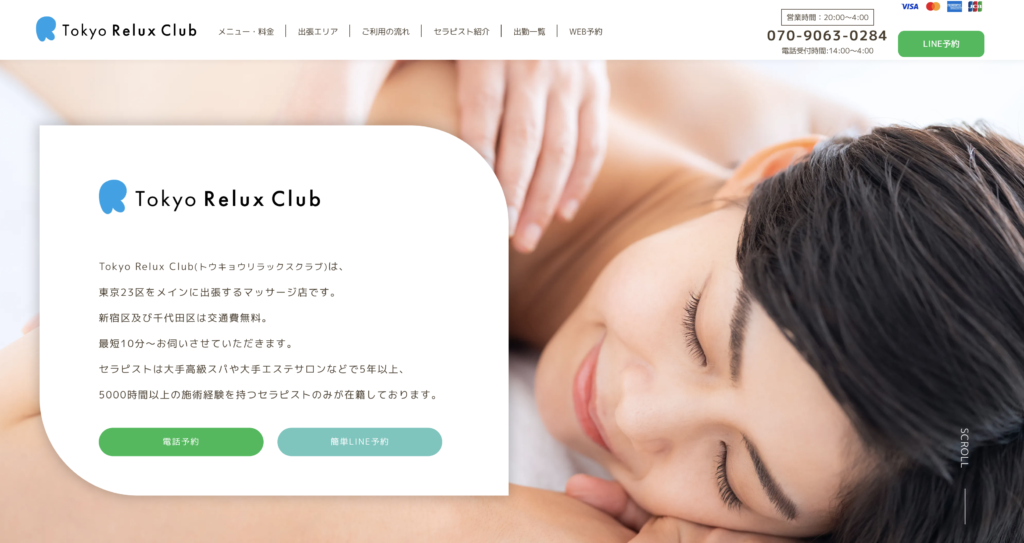 新宿エリアで出張マッサージを探している方には、Tokyo Relux Clubに問い合わせしてみてください。