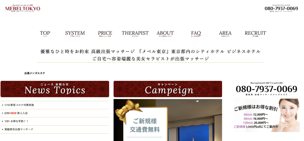 メベル東京は、容姿端麗な美人セラピストが在籍している高級出張マッサージです。