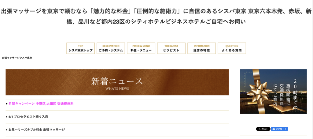 ここでは、四谷エリアで人気のある出張マッサージ店を5つ紹介します。